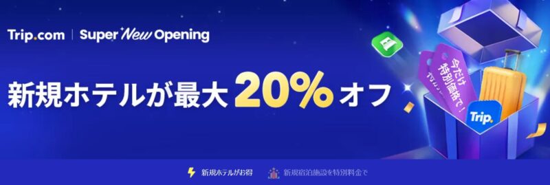 Trip.comでは、新しくオープンしたホテルやリニューアルされたばかりの宿泊施設に最大20%OFFの特別料金で宿泊できるキャンペーンを開催中。