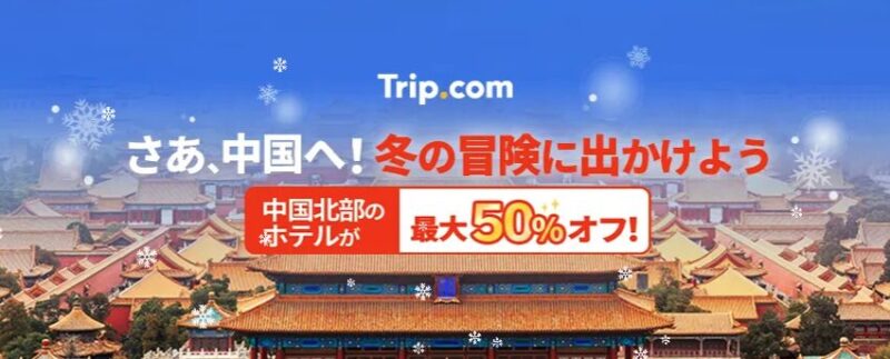 Trip.comでは中国のホテルが最大50%OFFとなるキャンペーンを開催中!遊び・体験、空港送迎などのクーポンも同時配布中です。